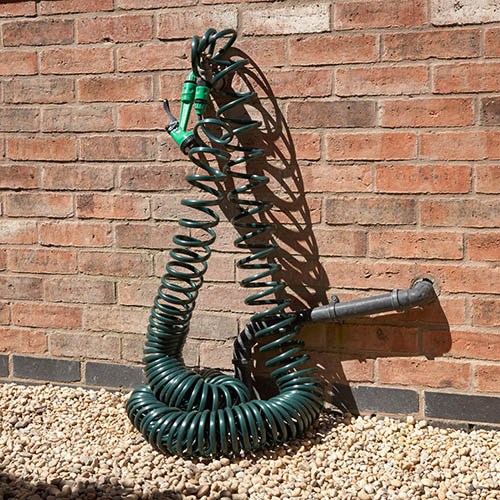 A complete watering starter set, this tough, lightweight and kink resistant hose is a must for all of your essential gardening needs. The 30m coil hose comes complete with all the fixtures and fittings that you'll need to get watering straight away, including a spray gun attachment with 5 different functions and a ¾in tap connector. Tough, lightweight and kink-resistant, the coil hose automatically recoils so that it can be stored away quickly and neatly, without metres of tangled pipe cluttering your garden and getting caught up around your plants. Packed in full colour box with a carry handle for convenience, you can store it away neatly after use.