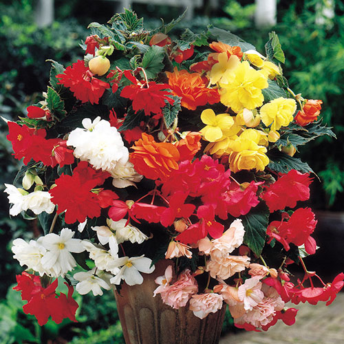 Begonia 'Double Colour Cascade' is a is just the thing for brightening up your summer garden. A fabulous trailing variety, Double Colour Cascade' is made up of incredibly bold and bright colours that all complement each other perfectly that each will provide you with a summer-long display of cascading double begonias. These gorgeous begonias are perfectly suited for growing here in the UK thanks to their strong, very weather resistant blooms – giving you a cascading rainbow of colour from May until early November. Plant Begonia 'Double Colour Cascade' in hanging baskets, window boxes and patio containers, or anywhere that they can freely cascade over the edges to create a simply stunning waterfall of colour. Supplied as 24 plug plants, ready to grow on before planting out.