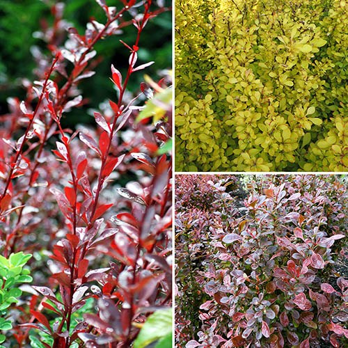Rarely available to UK gardeners, the Japanese Burberry 'Berber' is a gorgeous and versatile shrub that grows in a loose upright form and makes a perfect low-maintenance hedge or edging or can be added to a border or used as a specimen plant in a container. A prickly, low growing deciduous shrub, this berberis is particularly noted for its bright golden foliage that, unlike many other golden varieties, will not scorch in the sun so is ideal for a sunny spot. A feature plant throughout the year, as the seasons change so does the foliage. Creating a simply stunning and eye-catching display. In this collection you will receive: Berberis 'Harlequin' – a compact shrub that will bring vibrant colour to beds and borders, with its dark purple-red leaves, splashed with cream and pink. Berberis 'Golden Pillar' – is a beautiful spectacle with its orange-red new growth that matures to vivid golden green. Berberis thunbergia 'Golden Ruby' – striking coral red foliage that develops a beautiful golden edge as they mature, turning bright yellow in the autumn. Berberis are completely hardy, drought tolerant and easy to grow and care for. Although they don't require much pruning, they can be trimmed after flowering in spring. It will also respond well to being clipped to shape for hedging. Supplied as 3 x established plant in 9 cm pots, ready to plant out.