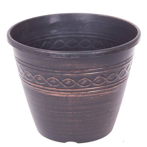 This classic bowl-shaped planter will add a decorative touch to displays in your home and garden this season.Finished in a metallic copper paint, this 'Infinity' planter is simple yet elegant and is the perfect partner for smaller plants such as bedding and bulbs. Place around patios to create an eye-catching display, by doorways or in smaller areas such as terraces and balconies where lower growing plants will thrive.Made from heavy duty plastic that is both UV stable and weather resistant, it's durable and can be reused year after year and also has drainage holes already inserted for ease.Suitable for indoor use but remember to place a saucer underneath!Supplied as a single 28cm (11in) Planter in black copper finish.
