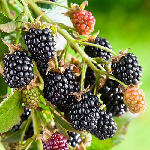 A unique variety of Blackberry – bred with the home gardener in mind and producing abundant, juicy crops of berries. Fruiting from July onwards, you'll be picking large crops of sweet, tasty fruits all summer long and the beautiful blossom that precedes the blooms are perfect for adding spring interest to the garden – and are an absolute magnet for bees and butterflies! Ouachita, (pronounced wha-shi-tah) is a new introduction, easy-to-harvest, with plump, glossy berries. These upright, nearly thornless canes bear high yields of medium-size fruit. A summer-bearing floricane, it has good heat-tolerance and berries ripen in July.