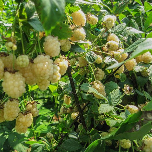 Here's a chance to grow something unique with this brand new variety of blackberry with stunning, almost translucent creamy white berries. Polar Berry grows strongly with an upright habit meaning it needs minimal support and is easy to manage in the garden. Grow it in the border against fence or trellis or give it a sunny spot on the patio in a large pot supported by an obelisk. Ready to pick in July and August - the fruits are juicy and very sweet and delicious cooked or in mixed fruit salads. With just a few thorns they're easy to pick and because of the colour they are much less attactive to foraging birds. Delivered as well established plant in 9cm pots