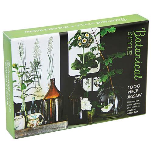 When the seasons and the weather conspire to stop you indulging your passion for plants and gardening, why not while away the hours with our top quality botany themed jigsaw puzzle. Featuring an exquisite botanic-inspired image, the scene conjures up thoughts of plant hunting, studying and watercolour painting, or maybe there's some sort of intriguing experiment going on here! Deceptively simple to look at, the large areas of plain featureless darkenss and light are guarenteed to frustate you at first and then delight you when you finally begin to make progress! Botanical Style is a gorgeous new range of jigsaws that tap into the current trend for bringing nature, plants and florals into the heart of the home. This jigsaw puzzle would make a great gift for any puzzle fanatic or plant lover. Measuring 64cm (26in) x 48cm (19in), you're bound to have a table large enough for you to spread out all 1000 acrylic pieces as you try to make sense of the challenge ahead.