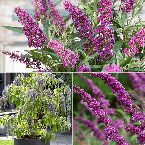 This collection of Buddleias will make a perfect addition to your summer garden. Great in mixed borders or as specimen plants in pots dotted around your patio. Enjoy the delightful fragrance and impressive flower power wherever you decide to plant them. In this collection you will receive: Wisteria Lane: With its honey-scented blooms and unusual weeping habit, this buddleia is a sight to behold when in bloom. Its large, pendant flowers hang like wisteria, making a truly amazing statement plant for your garden. Grows to 150cm (4.9ft) tall. Berries & Cream: A Splendid shrub, it's an exciting new take on the traditional purple or white varieties that we're all used to seeing. With its long, arching conical summer flowerheads that grow to 20cm (8in) long covered in hundreds or tiny, yellow throated magenta-pink and white florets. Grows to 2.5m (8ft) tall. Butterfly Tower: A breakthrough in buddleia breeding, 'Butterfly Tower' is perfectly formed, with a unique upright habit, ideal for growing in smaller spaces – so now anyone can grow this fragrant beauty. Producing a tower of mauve-purple flowers right through the summer and into autumn. Grows to 2m (6ft) tall. Buddleias are exceptionally free flowering and are irresistible to bees and butterflies, so this collection is ideal if you are wanting to encourage more wildlife into your garden. Plus, the gorgeous flowerheads make stunning cut flowers for you to enjoy inside your home. This fabulous collection will fill your garden with their spectacular blooms from June through to September. They are easy to grow and are very low maintenance, making these buddleias a perfect choice for beginner gardeners, just plant them somewhere sunny in well drained soil and they will thrive all summer long. Supplied as 3 x established plants, in 12cm pots, ready to be planted out.