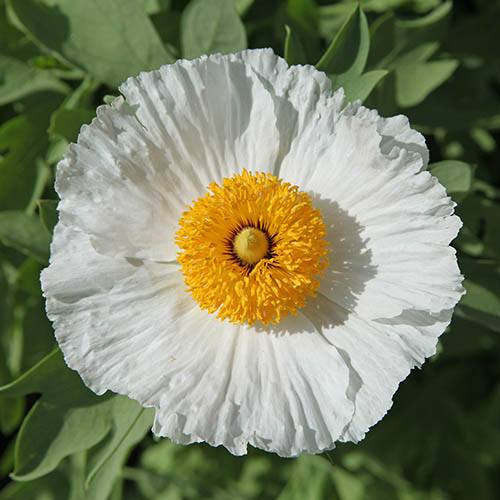 Rare and unusual, Romneya coulteri (also known as the Californian Tree Poppy) produces voluminous, crepe-paper white poppies with golden-yellow centres. Widley admired for its blooms, it begins flowering in early July and goes on until the autumn producing some of the largest flowers in the poppy family – up to 15cm (6in) in width. With its divided, grey-green leaves this native of dry coastal Californian scrubland is hardy and will die down in winter, and although slow to get established, it's vigorous once it's happy. An excellent specimen plant for a sunny mixed border, Romneya is fully deserving its coveted RHS Award of Garden Merit, you can be sure that this is a proven garden performer, guaranteed to be suitable for UK gardeners at every level of experience. You can therefore plant this in the garden with confidence, for stunning displays for many years to come. Supplied as 3 x established plants in 9cm pots, ready to plant out, growing to a height of 2.5m (8.2ft).