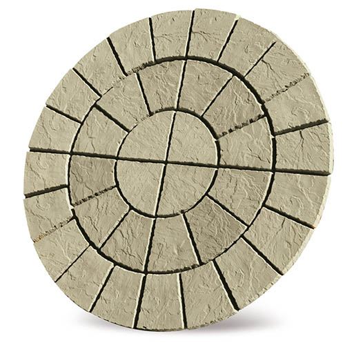 The weathered textures and tones of the Cathedral paving work beautifully with contemporary and traditional houses Approx Pack Size: 1800mm in Diameter or 2.54m2 (Squaring off kit not included in the pack) Pallet weight: 216kg Please note: This product will be supplied and delivered to you by one of our carefully selected third party retailers. Please see their delivery stipulations below. All criteria stated must be strictly met. Bowland Stone-Store2Door Home Delivery Checklist 1. Deliveries will arrive on a large vehicle with tail lift and manually operated pallet truck – ensure suitable access.2. Deliveries will be unloaded by tail lift from the road – ensure the road is flat and level.3. Deliveries will be moved onto the nearest hard standing by use of pallet truck – there must be a drop kerb and flat level surface.4. Deliveries are to mainland UK postcodes only. An additional delivery surcharge may apply to Scottish postcodes. Deliveries are made between 7.30am and 6.00pm Mon-Fri and a specific delivery time is unfortunately unable to be advised.Delivery will be to nearest hard standing by tail lift vehicle and manually operated pallet truck.We cannot guarantee that the delivery can be made onto a driveway. Deliveries can only be made to flat, level hard standing and are unable to be made onto roads that have an incline,are gravelled or grassed.The delivery area must be free from obstructions, eg overhanging trees or cables. If there is a height restriction this may prevent delivery.Delivery will normally take place within 7 working days and you will be contacted to arrange a convenient delivery date therefore please ensure you leave a day time telephone number when placing your order.All orders must be signed for and all items should be checked for any noticeable damages before signing. We must be notified within 24 hours of any breakages or defects otherwise we cannot guarantee free of charge replacements.Goods are supplied on non-returnable palletsIf an order is refused or cancelled by you once it has been despatched or is unable to be delivered due to delivery criteria not being met, a charge of £50 will be made to you for the return of the goods to the depot. Efflorescence, fading and differential weathering.Efflorescence is a reaction between carbon dioxide and the calcium hydroxide present in the concrete pores on the paving surface. Efflorescence itself can, over time convert to soluble saltsand will be washed away by rain. It is unpredictable but will generally disappear with the natural weathering process and time. These are natural phenomenon's that may occur through "weathering"and Bowland Stone cannot accept responsibility. This is an inherent characteristic of high quality wet cast stone products and can add to the overall patina of a landscape project.Differential weathering may occur as dark and light patches on the surface of the paving. Weathering and site conditions can cause these shade variations to appear across the surface of individual units.This does not affect the performance of the paving. Natural stone may show brown colouration as its iron content oxides. Prevention of water stainingPrior to laying, cover all paving and store in a vertical position.