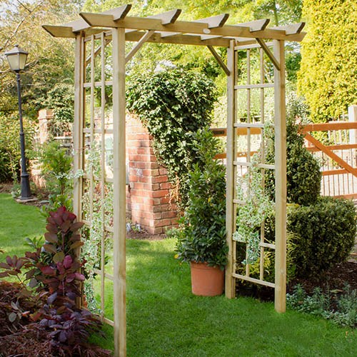 The Classic Arch has a traditional design and features simple trellis sides that are perfect for training climbing plants on. With the wide space between posts this arch makes a great garden entrance piece, add some height and colour with climbing floral plants. The arch is manufactured from Pressure Treated timber to give it a 15 year guarantee against rot and fungal decay. The rafters are pre-notched which makes assembly of the arch quick and simple. Instructions and fixings are included for an easy build. The Classic Arch makes the perfect entrance to any garden Manufactured from smooth-planed, Pressure Treated timber for a superior build Traditional roof batons create a sturdy structure Width between posts is 130cm Extended leg lengths allow the arch to be sunk into the ground 15 Year Anti-Rot Guarantee Manufactured from FSC certified timber from sustainable sources Pre-notched rafters ensure a quick and easy build Delivered flat packed for easy self-assembly Dimensions: 72 × 180 × 214 cm Estimated Weight (kg): 40.5454 This product is supplied and delivered by one of our carefully selected and trusted retail partners. A telephone number and email address must be left at the point of ordering so that delivery may be arranged. Sorry, Home Delivery is not available to the following postcodes:BT, GY, HS, IM, IV41-51, IV55-56, JE, KA27-28, KW15+, PA41+, PH41-44, PO31-41, ZE. Most products will be delivered on a 3.5 or 7.5 tonne vehicle, a similar size to a refuse collection lorry. Please ensure the vehicle can gain access to the property. Post Delivery Collection Charge: £40+VAT