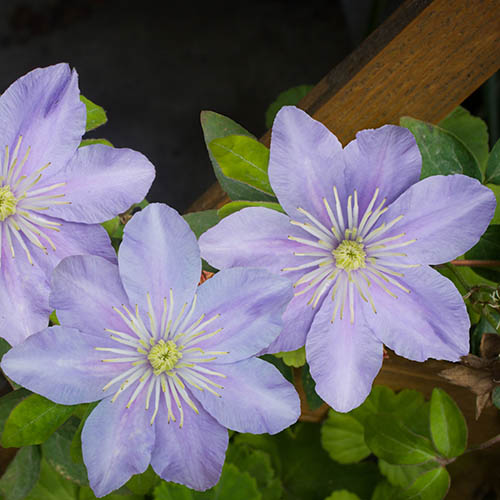 Flowering later in the season, this 'Justa' clematis is made up of beautiful lavender-blue blooms that are smaller than most hybrids but large in numbers, making sure that there is enough colour on this climber to satisfy the eyes! A vigorous climber, this clematis has a relatively compact habit, and this makes it suitable for growing in container if space is limited, where its free-flowering nature can be put to best effect. Clematis plants make wonderful additions to any garden and can be used very effectively to screen and hide objects and to enhance other plants such as other climbers and shrubs, especially roses. Due to the compact nature of this plant, you can also plant in a pot or container on the patio, so you should not worry about finding space in your borders. Why not grow up an obelisk in a pot for a beautiful patio display? Winter hardy and free flowering, they can pretty much be left to their own devices with just a light trim in late winter/early spring trim and a prune back in the summer after flowering. Supplied as an established plant in a 15cm pot, with a supporting tripod, ready to plant.