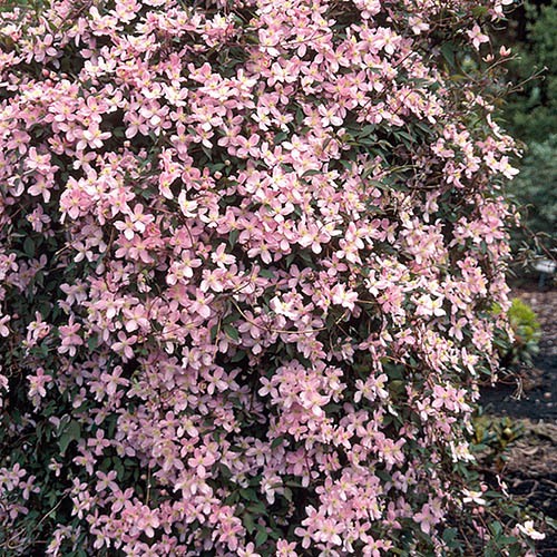 Clematis montana 'Fragrant Spring' is a vigorous, deciduous climber, just the thing for creating a mass of spring colour in your garden! This is without a doubt an exceptionally beautiful clematis. The foliage is tinted with bronze when young, before turning dark green as it matures, becoming the perfect backdrop to the delightful, fragrant pale pink flowers with yellow stamens. Like all montanas. 'Fragrant Spring' is a fast grower, using its tendrils to clamber and climb up and over just about anything! It'll quickly grow over garden arches and pergolas or up into surrounding trees and shrubs. It's also very useful if you want to disguise any unsightly sheds or fences or create a screen by growing it on a trellis. Wherever you plant it, you'll love the foliage, flowers and scent of this wonderful clematis. Montanas should be pruned – if necessary – soon after blooming ceases removing only wood from previous years. New summer growth will bear next year's flowers and should be trained and tied in accordingly. Supplied as an established plant in a 15cm pot, ready to plant, growing to 9m (30ft) tall and spreading 3m (10ft).