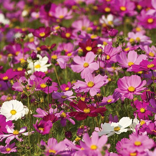 Bring a classic cottage garden feel to your borders and large pots with Cosmos 'Sensation'. Exceptionally free flowering, giving a succession of blooms. With it's delicate feathery foliage 'Sensation' makes a lovely cut flower too. It's pollen rich, yellow centres are a magnet for bees all summer long. This half hardy annual grows to 120cm (48in), flowering between June and October. Supplied as a pack of approx. 200 seeds.