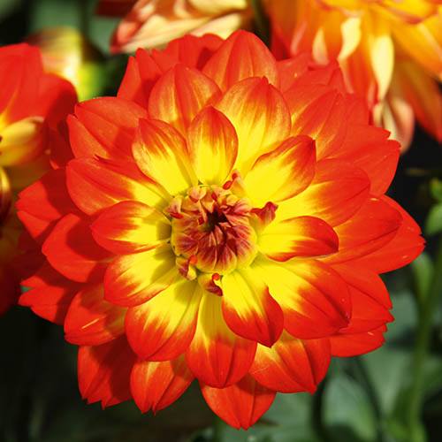 A stunning addition to our range of dahlias and a major colour breakthrough - quite possibly the most vibrantly coloured of all dahlias! Bicolour, dazzling blooms emerge in an ever-changing display of flame-reds, yellows and oranges – each flower subtly changing in appearance as it ages. The plants themselves are robust and multi-branched, meaning you get many more flowers for your money. Plants are fairly compact too, so they don't require staking – making them really good in both flower borders and pots on your patio, where you can move them around to get the maximum impact from their stunning flowers. As with all dahlias, they're fabulous as cut flowers – pick a bunch of these fiery divas to bring into your home for amazing colour. Plants will grow to a height of around 60cm and are supplied as 6 x jumbo plug plants ready for potting up and growing on.