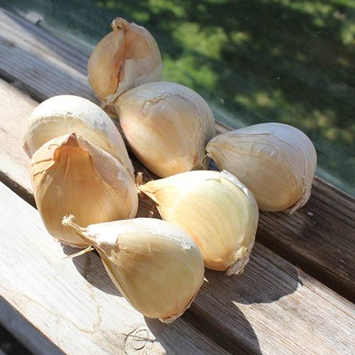 The spectacular Elephant garlic is more closely related to leeks than regular garlic and is commonly known as the 'wild leek'. Easy and rewarding to grow, this hardy perennial herb produces massive, papery-skinned bulbs that can measure up to 10-15cm (4-6in) in diameter, each with 5 or 6 huge cloves. It is a perfect choice for the kitchen garden or for adding a touch of drama to your herbaceous borders. Milder and sweeter in flavour than smaller varieties, Elephant garlic makes a versatile and interesting cooking ingredient. Grate it raw for salads and dressings; slice it finely for stir-fries; or best of all, bake or roast whole bulbs and squeeze out the lovely creamy centres for an unusual vegetable or dip, for spreading on crusty bread, or adding to mashed potato. Also great for the barbeque – just wrap them in foil and throw them on the grill! Cloves can be used fresh and succulent, or after they have been dried and stored over a few weeks or months, when they will have a more intense flavour. A native of Asia, Elephant garlic thrives in a sunny position in well-drained soil, although can tolerate a heavier soil than smaller garlic varieties. Its large, broad, flattish blue-green leaves and sturdy flower stems will rise tall and proud in your vegetable garden – or make a striking feature in a mixed border. The pinky-purple blooms appear in June and July; they are pretty enough but should be trimmed early so the plant concentrates its goodness in the swelling bulb. Cut the flowers for your vase or leave just a few in your borders for dramatic effect. Supplied as 4 planting cloves to produce 4 plants. Elephant garlic can be placed in the ground any time from September to February, avoiding times of frost or extreme cold. Grows to 1.5m (5ft) high by 30cm (12in) wide.