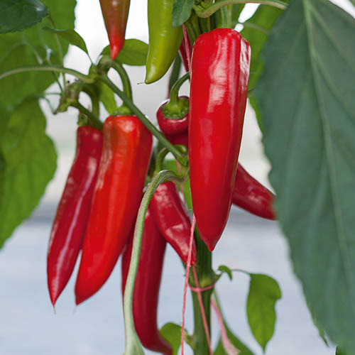 Chilli 'Amboy' is a fantastically versatile variety. Tangy and medium hot, it's great for adding a chilli kick to cooking without being overwhelming. It produces an excellent crop of gorgeous looking, tapered fruit that grow to 15cm (6in) long and change from lush green to rich, glossy red as they mature, and get hotter! 'Amboy' is a grafted variety, which brings many benefits, in particular that each plant can produce much, much more fruit. These chillies begin to fruit earlier and continue for longer, from July until October with much higher yields than ordinary chillies! Excellent resistance to pests and disease, make grafted chillies so easy to grow even if you have no experience, these will thrive to provide you with an abundance of fresh, tasty chillies. Superb for growing outside, so you don't need to have a greenhouse to have masses of scrumptious chillies! They can also be grown in pots, perfect for small gardens, patios, or balconies. Supplied as 3 established plants in 9cm pots, ready for planting and growing to 1m (3ft).