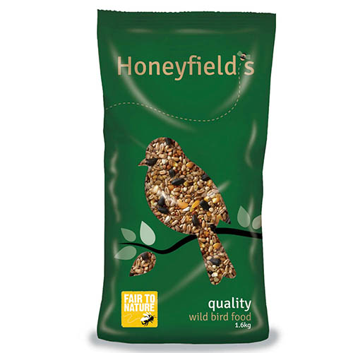 So why buy Honeyfield's 'Fair To Nature'? Where the ingredients allow, Honeyfield's wild bird foods contain cereals and other seeds grown on Fair to Nature farms. These farms grow special areas of seed-bearing crops to provide food for farmland bird species, such as linnets, skylarks, and buntings as well as providing habitats for a host of other wildlife. This means that Honeyfield's wild bird food not only feeds the birds in your garden, it looks after the wild birds and wildlife in our countryside too.   It is always good to give the wild birds a helping hand throughout the year and it is a joy to bring a wide range of birds into the garden. Ideally fed through a dedicated seed feeder, this 'Fair to Nature' wild bird food is a high energy, nutritious year round favourite. Bird seed is renowned for attracting a wide variety of birds into the garden, in particular great tits, sparrows, chaffinches and blackbirds   Composition: Wheat, Black Sunflower, Cut Maize, Oats, Yellow Millet, Red Millet, Red Dari and Rapeseed Oil. Weight: 1.6kg