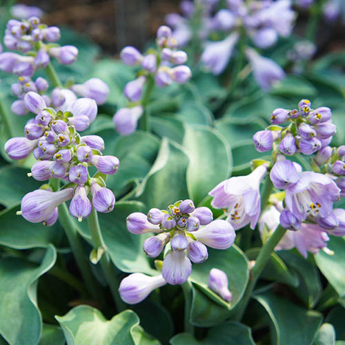 Hostas are one of the best perennials to grow in UK gardens, forming mounds of attractive foliage that becomes topped with sprays of bell-shaped blooms throughout the summer. 'Blue Mouse Ears' is a lovely variety that will provide your garden with neat bluey-green leaves that form compact rounded mounds. The once the summer arrives, they will produce beautiful sprays of bell-shaped blooms in a delicate shade of purple. Growing virtually anywhere, and particularly valuable for those awkward shady spots, they are available in a wide range of colours and forms to suit any situation. They are great for filling gaps in your beds and borders, and they also look fabulous planted up in patio pots and containers separately for a more formal finish around the garden. Fully deserving its coveted RHS Award of Garden Merit, you can be sure that this is a proven garden performer, guaranteed to be suitable for UK gardeners at every level of experience. You can therefore plant this in the garden with confidence, for stunning displays for many years to come. They love the sun but will perform just as well in the shade – they're a great choice for planting underneath trees and shrubs in dabbled shade, acting as great groundcover plants. Supplied as 3 x established plants in 9 cm pots, ready to plant out. Reaching a heigh and spread of 50cm (19.68in).
