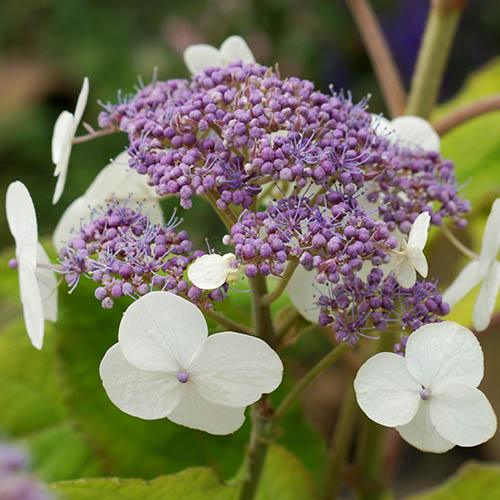 Make a statement in your garden this year with this eye-catching and rarely available, new variety of hydrangea. Resplendent in spring with rich, velvety, golden foliage that is edged in orange, 'Goldrush' is truly a sight not to be missed, and breath-taking when it has darker foliage as a backdrop, really lighting up the spring garden. An award-winning hydrangea, 'Goldrush' was shortlisted in the 2018 RHS Plant of the year competition and was also given a Bronze Medal at Holland's Plantarium 2018 awards so its officially recognised as something really special! As the season progresses, the leaves of this lovely hydrangea steadily tone down so that by the time the large lace cap blooms emerge, the leaves are green. The flowers themselves are a subtle, pastel blue-violet and surrounded by a ring of large white bracts which contrast spectacularly with the foliage. But the show doesn't end there – the leaves turn fiery orange again in the autumn before falling to reveal its attractive peeling bark. This really is a plant with year-round interest, that can be grown in the garden border as well as in pots and containers where it brings its vibrancy to decks, patios and balconies. Being a hydrangea, it's simple to grow, needing no complicated maintenance. Reaching 2.5m (8ft) in height and spread, 'Gold Rush' responds to a hard spring pruning and grows well in sun or partial shade, although it does appreciate some shelter to protect the emerging spring leaves from drying winds.