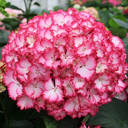 A beautifully formed mophead hydrangea, 'Colour Dream' lives up to its name with full, round heads of large ruffled petals in pink and white bicolour that change over time to take on a green-flushed tone. Gowing into a loose mound of large leaves, this glamourous hydrangea makes a statement wherever it is planted and when grown in a pot, 'Colour Dream' will bring an attractive touch to your decking, patio or balcony. Being a mophead, the large flower heads consist of sterile coloured bracts which look like flowers and these are super as cut flowers for both summer colour and dried winter arrangements. Easy to grow and relatively compact – it reaches just 1.5m (5ft) high and wide – this is a hydrangea which can be grown by anyone whatever their level of experience. Supplied as an established plant in a 3L pot, ready for planting out or potting on.