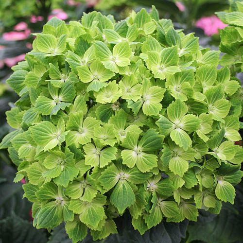Guaranteed to dazzle, this beautifully formed mophead hydrangea makes a unique garden plant and is perfect to give as a gift. While many hydrangeas start their blooming with a hint of green before colouring up, 'Rhapsody' maintains its green colour right up to autumn, where it ends the season with a brief touch of flame red before the leaves also take on fiery tones before falling. Compact enough for container gardens and small spaces 'Rhapsody' will grow into a loose mound of large leaves, and this glamourous hydrangea makes a statement wherever it is planted. Even when grown in a pot, 'Rhapsody' will bring an attractive touch to your decking, patio or balcony. Being a mophead, the large flower heads consist of sterile coloured bracts which look like flowers and these are super as cut flowers for both summer colour and dried winter arrangements. Easy to grow and relatively compact – it reaches just 1.5m (5ft) high and wide – this is a hydrangea which can be grown by anyone whatever their level of experience. Supplied as an established plant in a 3L pot, ready for planting out or potting on.