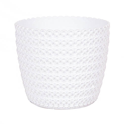 The perfect way to display your favourite indoor potted plant, this white, knitted-jersey effect pot cover will bring classic style to your home. This decorative overpot will help cover up unsightly nursery pots and allows you to coordinate your plant with your existing decor. Repotting a plant immediately after purchase can disrupt roots and stress the plant, often leading to poor growth. These overpots are the perfect solution to the problem as you can leave the plant in its original container and still get the decorative effect that you want. Cachepots don't have drainage holes to that your surfaces are not spoiled when watering. Easy to use, it's best to remove your plant before watering and allow the water to drain completely out of the plant before placing it back into the cachepot. Supplied as a single plastic pot in White Jersey effect. 16cm diameter x 14cm high