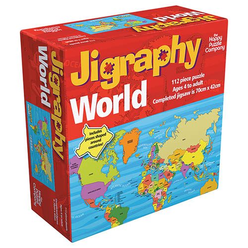 This brilliant 112-piece jigsaw challenge creates a stunning, full colour map of the world. Many of the pieces have been shaped around country borders. Follow the image included inside, or use your own knowledge to work out where each piece should be positioned! Please note that this map displays the name of all full member states of the United Nations. Selected other locations are also shown. Box Size: 18cm x 18cm x 8cm Puzzle Size: 70cm x 42cm