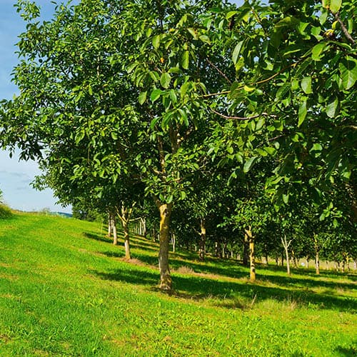 Juglans regia, the English or common walnut is a deciduous, broadleaf tree with shiny, feather-like leaves and fleshy, green fruits which contain the delicious nuts. In spring, the trees produce tiny immature fruits which are wind pollinated by fat male catkins and, although trees are self-fertile, you can greatly improve yield by introducing another type of walnut. The walnuts themselves develop inside a fibrous, leathery casing which splits when the nuts ripen in early autumn. This is when the nuts are at their finest, with a softer texture and distinctive, creamy taste. If you want to store them for Christmas, you are best off drying or freezing them after removing all traces of the outer husk. These fast-growing trees can reach 30m (100ft) high and 15m (50ft) in ideal conditions, and although tend to be smaller in the UK, they're still a plant that likes lots of room to grow. Supplied as an established plant in a 22cm pot, approx. 1.5m tall, ready for planting out. Did you know… That walnuts originated in ancient Persia, where they were reserved for royalty.The best wood is at the base of the tree, so walnuts are often dug up for timber, rather than felled.Walnuts produce a growth inhibitor – juglone – that has a detrimental effect on some species of plants growing nearby and it is believed that this stops other plants growing around them and competing for nutrients – a very clever tree!