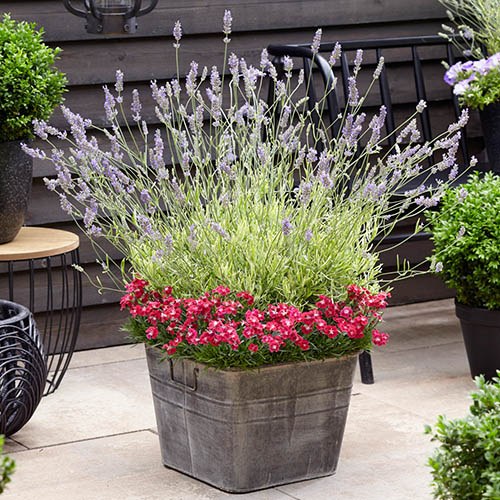 Imagine a dazzling, hardy, variegated lavender, perfect to bring your borders and containers to life with very little fuss and maintenance. Well let us introduce you to our newest beauty, the luscious lavender 'Platinum Blonde'. With her classic blue, fragrant flowers set above brightly variegated leaves, Platinum Blonde is an unusual, must-have colour combination for your garden this year. The blue-grey leaves are edged in creamy yellow and this contrasts magnificently with the flowers, making them 'pop' to provide colour, scent and form to your garden – she really does have everything! The perfect lavender to cope with most things that the British weather will throw at it – Platinum Blonde tolerates cold and wet as long as she's planted in free-draining soil and it simply revels in heat and drought – something that we may need to get used to in the future! Use Lavender Blonde to make an eye-catching specimen plant on a balcony or terrace or add her to mixed containers or into borders for amazing summer-long displays. And you don't just have to take our word for it – Platinum Blonde has won a multitude of notable awards – even before being nominated for the RHS Chelsea Plant of the Year: The innovation prize for the best new perennial introduction at IPM Germany – the world's biggest, premier plant and horticultural show. Bronze medal in the Innovation Competition at Plantarium – one of Holland's largest exhibitions for perennials. IBERflora Spain – awarded the best plant innovation of the show! Supplied as an established plant in a 12cm pot, ready to plant out, Lavender 'Platinum Blonde' flowers in summer and stays compact with an eventual height of 40-50cm and width of 50cm.