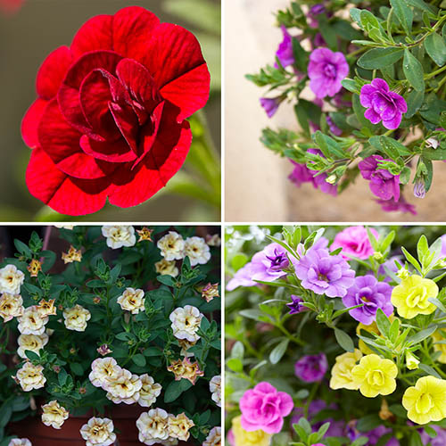 These dazzling mini petunias are a must for any garden giving a sumptuous display of trailing 'mini bells' throughout the summer, bringing colour and style to your garden, balcony or patio You'll be absolutely amazed with the depth of tone that these super petunias exhibit and the exceptional colours will be an absolute WOW when planted up in baskets and containers. Versatile and striking, they can be used as fillers or spillers, creating a subtle palette of rustic tones which will compliment your existing displays magically. Daintier than regular petunias, these neat mini rosebud-like, double blooms are produced in far greater numbers meaning your baskets and patio containers will be smothered with colour from late spring to autumn. Known botanically as Calibrachoas, a close relative of petunias, they are vigorous growers and are very easy to care for, these floral beauties are remarkably weather resistant, bouncing back much more quickly from wind and rain and withstanding midday heat much more successfully – the perfect plant for UK gardens. Why not enjoy Calibrachoa 'Calitas' this year in your garden! Perfect for baskets, window boxes and patio pots, use them wherever non-stop colour is needed. The collection features three spectacular colours, 4 plug plants of each: Supplied as a collection of 12 plug plants in a random mix of colours.