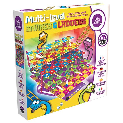 The classic board game with a clever twist. This fantastic version of Snakes & Ladders features five levels which need to be ascended to win the game. Climb your way up the ladders to the next level, but land on a snake and you'll fall through a bottomless bucket and drop back down! The set comes as an easy-to-build flat pack with full colour illustrated instructions. It's approximately 40cm long, 37cm wide and an impressive 21cm tall. The game can also be taken apart and re-stored. It's absolutely awesome! Great at honing visual perception and sequencing skills Box Size: 38cm x 38cm x 5cm