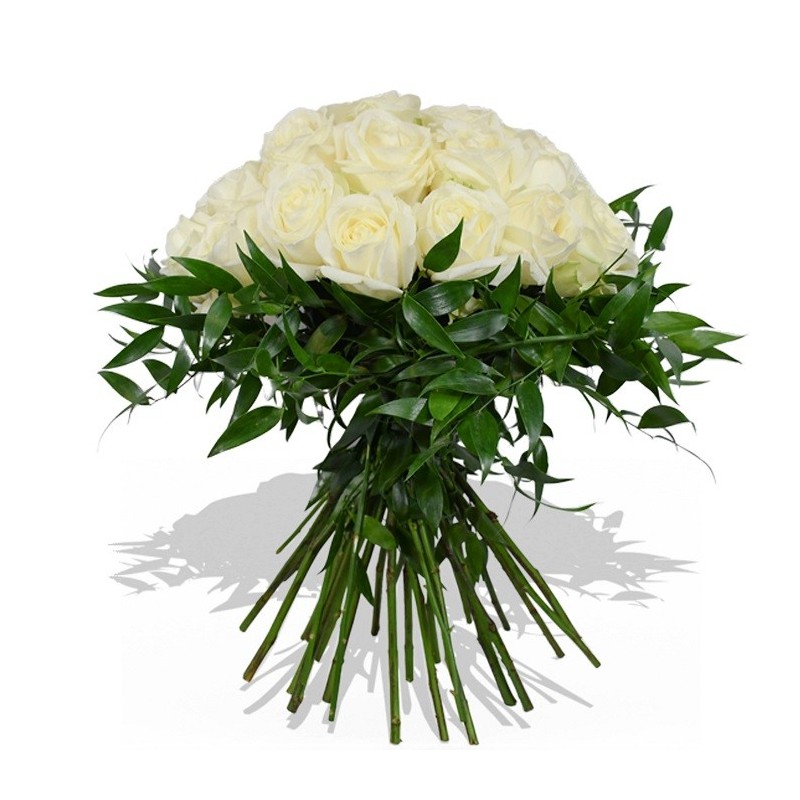 A sublime design of white roses and Italian ruscus foliage, this bouquet has everything going for it. Get it delivered today and discover the world of flowers at your fingertips.
