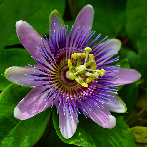 The passion flower (passiflora) immediately conjures up images of exotic locations, and with its tropical, fragrant flowers it's certainly an attention grabber! The incredible flowers of Passiflora 'Purple Passion' certainly live up it s name, a beautiful and intricate collection of filaments, tendrils and petals, all bound together in a colourful symphony of floral perfection that will captivate even the most hard-to-please gardener. As a climber,it is the perfect plant to add height and inject drama into your garden, and in ideal conditions, these exquisitely beautiful vines will grow rapidly with their lobed leaves and twining tendrils which help support the plant on its journey upwards. Vigorous and easy to grow, these tropical climbers are hardy to around -10°C and always rewarding for their sheer exuberance and every gardener should have a go at growing them! Supplied as an established plant in a 9cm pot, ready to plant, it will flower from July – September.