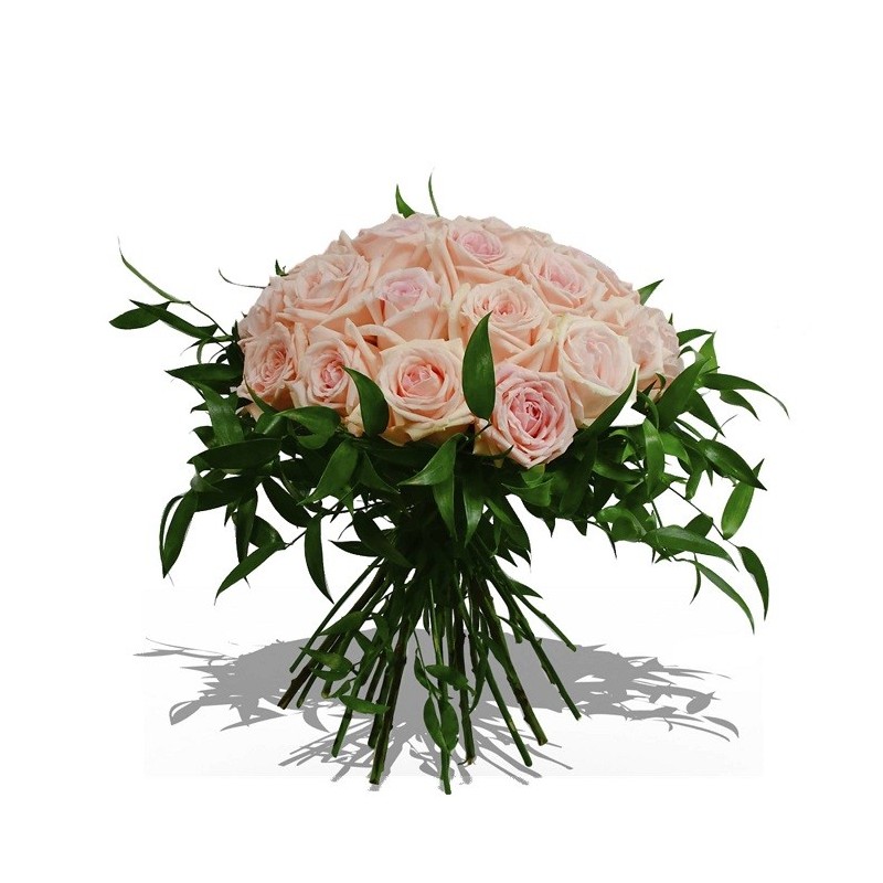 Blush pink and beautiful, this rose bouquet is complimented by verdant Italian ruscus. Each one is hand-tied at our London studio and individually wrapped making it the perfect gift for friends and family.