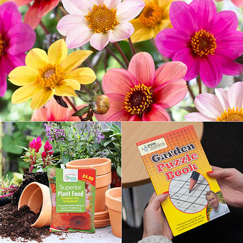 Patio Dahlia Mix Plus Fertiliser & Puzzle Book YouGarden