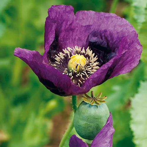 An opium poppy in jewel-like shades of rich velvet-plum, this hardy annual is best sown where it is to flower. The large bowl-shaped blooms rise tall on twisty stems atop attractive clumps of subtle, grey-green foliage. With gorgeous open, papery petals and exquisite pale yellow stamens, they will attract a variety of beneficial insects to your garden – a great companion plant to aid pollination and encourage wildlife. 'Lauren's Grape' will sit equally well in contrasting or complementary colour schemes – perfect for mixed beds, borders or containers, or scattering through wildflower areas. For pleasing displays, plant in groups or small drifts. Regular dead-heading will prolong flowering although the seeds pods are highly ornamental and provide great structure for fresh or dried flower arrangements. Remove the seed pods in late summer before they mature unless you want them to self-seed for an informal or wildflower look. The seeds can be used in baking. These poppies will thrive in full sun or part shade, in well-drained, preferably poor soil. Sow outdoors from March to May, or August to October, and you can expect blooms from June to September. Staggered sowings will ensure a longer flowering season. Supplied as a packet of 500 (approx.) seeds ready to plant outdoors directly into their flowering position. Grows to a height of 90cm (36in) by 30cm (12in) spread.