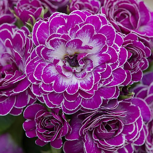 A new introduction, this eye-catching double primrose Belarina 'Candy Frost' is a refined, extra-large flowered bicolour with lilac blooms edged in ice-white lacing. Easy to grow and with unrivalled performance, this compact primrose is fully winter-hardy and flowers up to mid-May with masses of large flowers up to 3-5.5cm (1.2-2in) held on upright stems. The flowers remain fully double like miniature roses and a unique green ruff highlights the flower colour further – a truly outstanding spectacle. Supplied as 3 Jumbo Plugs ready to be potted up and grown on.