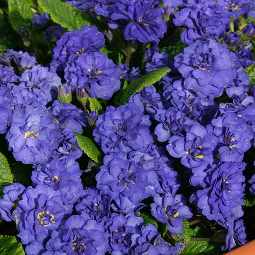 Primula Belarina 'Cobalt Blue' wonderfully intense, vivid blue, scented double flowers which have a dot of white on the end of each petal, making them look like they're sparkling. These bold primroses are naturally compact and have beautifully textured leaves in rosettes and are smothered in flowers between March and June. They will look fabulous wherever you plant them. They're great in pots, containers, beds or baskets, in partial shade or sun – they really are easy to grow and bring the spring garden to life with their cheerful colours. Perfectly hardy in the garden, they're perfect when combined with other perennials and underneath trees and shrubs where they'll flower for months, gradually forming large clumps that can be divided every few years to give you more plants. Supplied as 3 plug plants ready for potting on or planting out, growing to a height and spread of 20 cm (8 in).