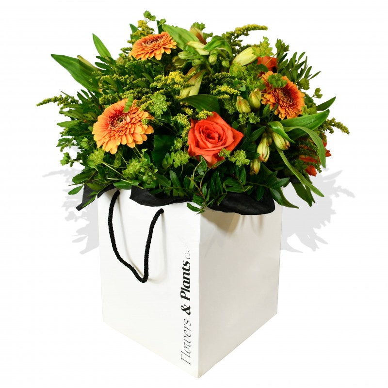 Inspire a loved one or just let a friend know you’re thinking of them with Flowers and Plants Co. We believe flowers have the power to go beyond words and communicate something more. So, no matter the distance, reach out with this bouquet of roses, gerberas and yellow solidago.