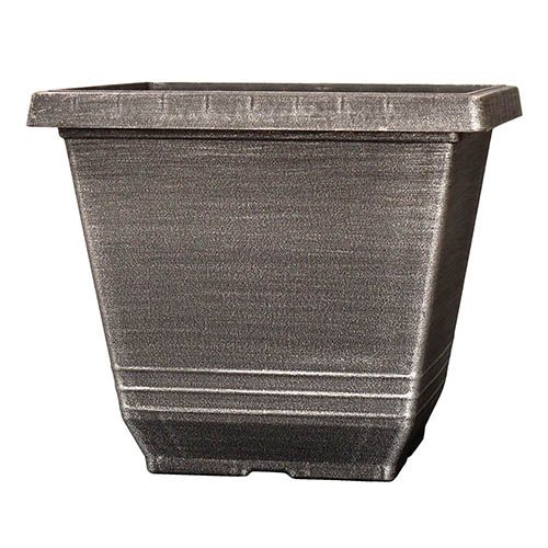 This metallic, silver finished square planter is simple and elegant and will fit perfectly into any garden – big or small, traditional or contemporary.Suitable for a wide range of planting, it'll add a decorative touch without overdoing it. Plant up bedding and bulbs or why not try a small standard tree or dwarf shrub that will add height and structure to your patio, terrace or even balcony displays!Made from heavy duty plastic that is both UV stable and weather resistant, it's durable and can be reused year after year. Supplied as a single planter, 20 cm (8 in) square.