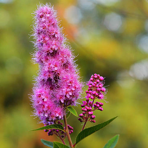 Also known as the steeple bush, this is a vigorous shrub with soft, felt-like leaves and masses of fluffy pink flowers. Easy to grow and definitely a plant that can take a lot of neglect, the steeple bush is a plant that can be grown by virtually anyone! Especially suited to cottage gardens and informal plantings, it can be clipped back hard and will recover rapidly. Perfect for filling gaps in the garden, it will send up suckers that will soon form a dense thicket of leaves that becomes covered in its characteristic blooms through late spring and early summer. Supplied as an established plant in a 2L pot, ready to plant out.