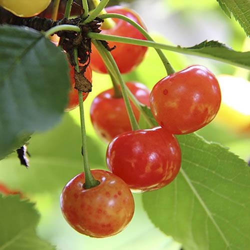 This delightful cherry variety not only tastes sensational, it will look spectacular in your garden, wherever you plant it. Once the gorgeous spring blossom has faded away, 'Bigarreau Napoleon's' very large, slightly elongated fruits ripen to a warm, golden colour, blushed with deep, cherry-red, providing a beautiful contrast with the lush green foliage in mid-summer. When you pick one of these cherries from your own tree and pop it into your mouth, a rich sweetness will explode from the creamy flesh – simply tantalising for the tastebuds! The flavour is sweet but not as sugary as dark sweet cherries such as 'Stella'. They taste so divine that you will want to pick the whole lot and eat them straight away – so it is a good job it is such a heavy cropper! Growing your own cherries at home is not only deeply rewarding, it will also save you an absolute fortune compared with supermarket prices. And, of course they taste so much better!