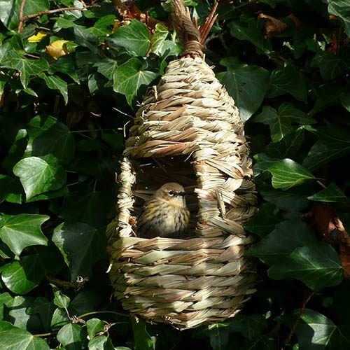The original design tall nest pocket is a low-cost way of offering a nesting opportunity or roosting place for small birds. The pocket should be concealed in the foliage of a hedgerow or shrub and can be a life saver for small birds in cold conditions helping them maintain body heat. Made of various natural fibres such as reeds & grasses (appearance may vary due to seasonal availability) Has built in wire hanger to allow the roost pocket to be attached to branches Perfect for species such as robins, wrens, finches, bearded tits etc. Arrange at different heights for a variety of species Can be used in reed beds for warbler species Leave in situ / maintenance free A secondary application for the pocket is for small mammals like wood mice, harvest mice or even for domestic small mammals like hamsters and mice 16.50 x 9.50 cm
