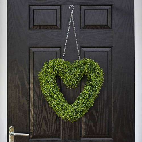 This lovely artificial Boxwood topiary heart is perfect for hanging in the garden, on the shed, trellis, or on a door and it's great for adding a natural feature into your garden setting. Complete with a two-way galvanised hanging chain and weather/UV resistant it's good for outdoor and indoor use.Completely maintenance free it would make a perfect gift for a loved one or garden lover Dimensions:42 x 40 x 9cm Weight: 0.569kg
