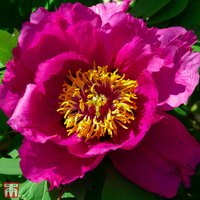 Tree Peonies are beautiful plants in all varieties but you’d find it hard to beat ‘Cang Zhi Hong’ for head turning appeal.The ruffled red-pink blooms with a mass of golden yellow stamens make Tree Peony ‘Cang Zhi Hong’ a sight to behold in summer. You can expect around a hundred blooms from a mature plant and as each flower can be 25cm (10 wide) it’s a unmissable sight. These exceptional shrubs are hardy and disease resistant, and will continue to bloom for a lifetime. The exotic flowers of the tree peony are simply stunning in borders and make glamorous cut flowers for vases indoors. Height and spread: 150cm (60).