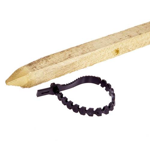 Protect your investment in fruit trees, with our high quality, easy to use and low cost tree planting kit. Comprising a treated and tanalised softwood support stake, 1.2m long x 3.2cm across, and a super-soft 38cm long rubber tree tie, to firmly hold the tree trunk in place while the root system establishes.