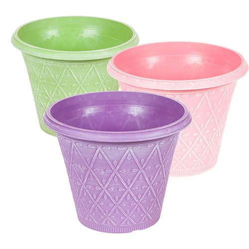 Perfect for bulbs, bedding, shrubs, houseplants and more, this stunning trio of pastel-coloured planters will add an exquisite decorative look to your home or garden, without the cost of real metal or ceramic pots. Hand finished, using a brand-new technique developed last year, they will add a touch of designer flair to your home or garden. With a bright, modern pattern, these weather-resistant, plastic planters are UV stable and will really last the test of time meaning you can use them year in, year out. Made from heavy-duty injection moulded plastic, they're tough and durable, and also frost and UV resistant, so they'll withstand the worst of our British weather too! Plus, each one has drainage holes already drilled to allow excess water out and therefore let your plants thrive! A far cheaper alternative to expensive ceramic or metal pots, they're lightweight and easy to transport around the garden while still providing a tough and durable support for plants. Finished off with a stylish, chalk-wash, pastel finish, they will certainly help to provide spectacular garden displays for years to come! Brilliant value, we supply 3 x 30cm (12in) Plastic Planters, one each of three colours: Pink, Purple and Green.