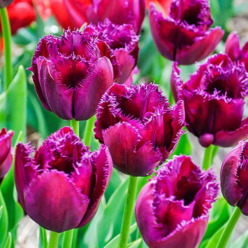 Of the fifteen groups of tulips, the fringed group is without doubt one of the most extravagant. Officially called Group 7, they are relatively new but have quickly become popular because of their highly ornamental appearance. 'Curly Sue' is an outstanding example with its wonderfully rich purple flowers that have a deep aubergine fringe around the edge of each petal. The flowers are set off to perfection by broad, sword shaped greyish-green leaves. Very showy and flamboyant, and utterly irresistible! Planted in groups, 'Curly Sue' makes an extravagant display, and you'll definitely want to collect more fringed tulips after enjoying this one. Try mixing it up with bright orange varieties for a vibrant spring display. They will happily grow in patio pots and planters as well as in borders in sunshine or partial shade, and like all tulips, they're wonderful cut flowers – those fringes will be a real talking point. Tulips are very easy to grow and care for and can be left in the ground after flowering as long as it's well drained, so you'll get another wonderful display the following, or they can be dug up and stored over winter before replanting the following spring. Supplied as 12 bulbs, size 10/11, ready to plant in autumn, growing to a height of 45 cm (18 in) and width of 15 cm (6 in).