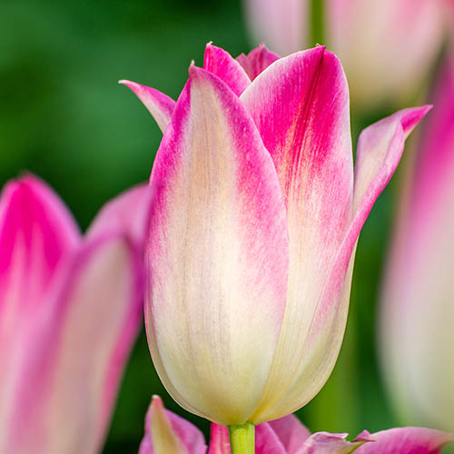 'Holland Chic' is an extremely attractive lily flowered tulip with gorgeous white blooms that are initially white with a pale pink blush which slowly deepens as the flowers age until they become almost entirely pink. The lovely soft colour works beautifully when grown with white or deep pink flowers and they look superb in a vase. Growing happily in sun or partial shade, they are ideal in large planters or in flower borders, especially in large groups, where their wonderful flower shape can be admired. Tulips are very easy to grow and care for and can be left in the ground after flowering as long as it's well drained, so you'll get another wonderful display the following year as they slowly naturalise and spread, or they can be dug up and stored over winter before replanting the following autumn. Supplied as 20 bulbs size 10/11, ready to plant in autumn, growing to a height of 45 cm (18 in) and width of 15 cm (6 in).