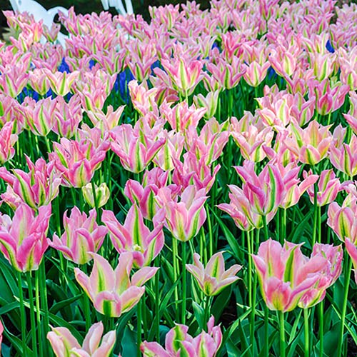 The wonderful colour combination of beautiful blush-pink petals brushed with stripes of pastel-green, makes an ever-so pretty contrast on a delicate looking but totally hardy spring flower. Its easy to see why tulips are one of the most popular spring bulbs thanks to their lasting flowers, vigorous growth and versatile nature. They are perfect for planting with many different colour variations to give fresh, vibrant spring colour to your garden, patio or decking, but they also make beautiful features in pots in large displays of the same variety. A florist favourite, their long-lasting blooms say prestine long after being cut which makes them ideal for creating stunning indoor vase displays on windowsills. Tulips are very easy to grow and care for and can be left in the ground after flowering as long as it's well drained, so you'll get another wonderful display the following year as they slowly naturalise and spread, or they can be dug up and stored over winter before replanting the following autumn. Supplied as 12 bulbs, size 10/11, ready to plant in autumn, growing to a height of 50cm and width of 15cm.