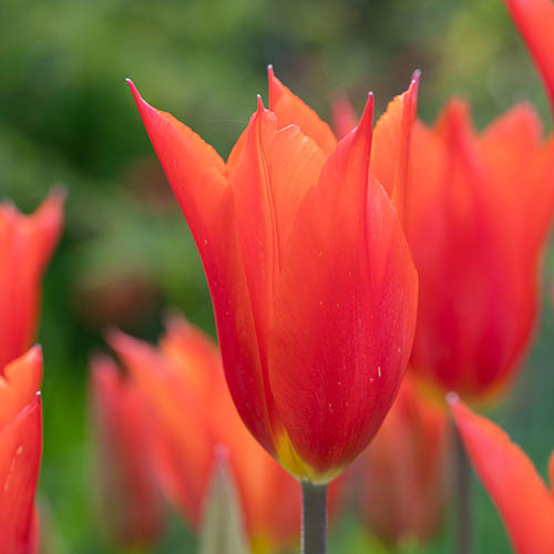 Incredibly vibrant, 'Dutch Dancer' is and extremely attractive lily flowered tulip with extremely large, scented brilliant orange flowers flushed with red – a real showoff! The intense colour looks incredible when planted in large groups and is spectacular when grown with other boldly coloured flowers such as yellows, oranges, purples and blues, and they look superb in a vase. Growing happily in sun or partial shade, they are ideal in large planters or in flower borders, where their wonderful flower shape can be admired. Tulips are very easy to grow and care for and can be left in the ground after flowering as long as it's well drained, so you'll get another wonderful display the following year as they slowly naturalise and spread, or they can be dug up and stored over winter before replanting the following spring. Supplied as 20 bulbs, size 10/11, ready to plant in autumn, growing to a height of 45 cm (18 in) and width of 15 cm (6 in).
