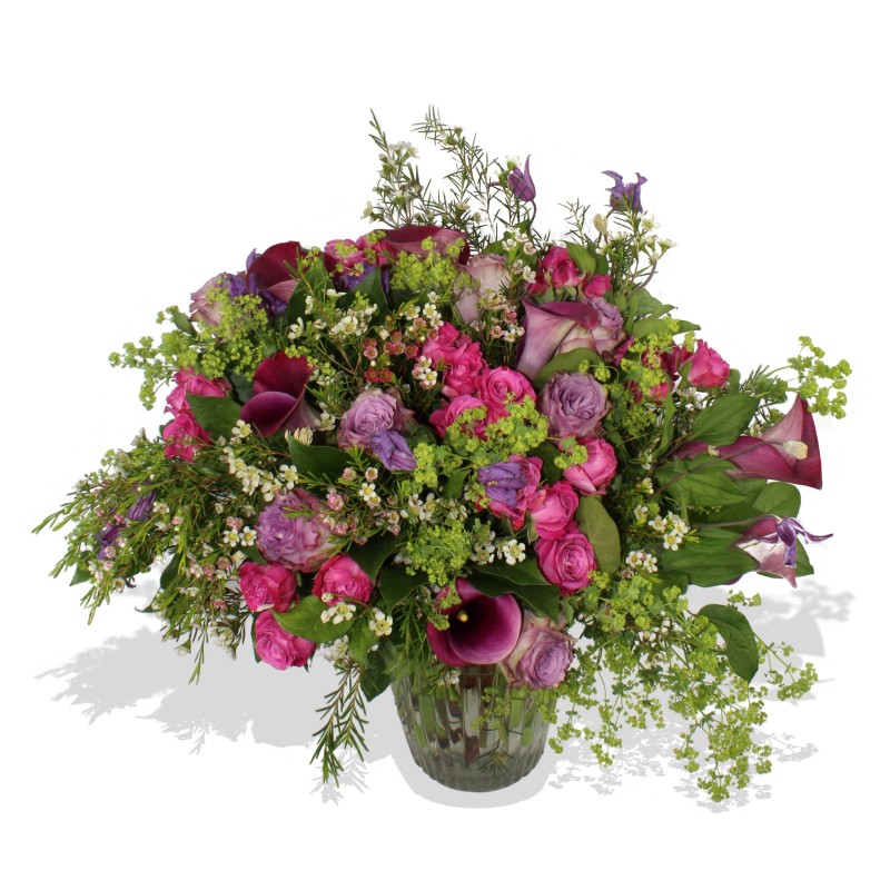 Ride into the sunset with the Wild Country bouquet. A wild and wonderful mix of purple calla lilies, pink roses, clematis and wax flower, we’ve designed this arrangement to send a message and sweep a recipient off their feet: they’ll be delighted with the Wild Country, whatever the occasion.