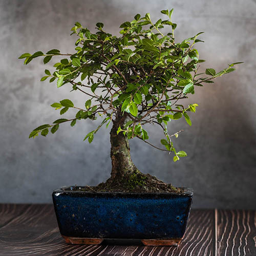 Also known as the Japanese Grey Bark Elm, Zelkova serrata is a wonderful starting point as you enter the magical world of bonsai. It is a delightful deciduous tree with a naturally upright growing habit, peeling grey bark and serrated glossy dark green leaves. Years of highly skilled training and pruning have resulted in an elegantly shaped miniature tree, grown in a special ceramic bonsai pot and already well established. A native of Japan and China, Zelkova is happy in a cool, bright room away from heat sources, and it will also thrive outdoors from early summer, where it will soon acclimatise to cooler nights and warmer days. As a deciduous tree, it will lose its leaves in the autumn, and it's at this time that you should bring it back indoors for the winter, gradually reacclimatising. Trees that have been kept indoors year-round may retain some of their foliage over winter. Bonsai need regular watering as they can easily dry out. This is especially important if your Zelkova is growing outdoors, when the small amount of compost in the pot can dry out amazingly quickly on a warm, sunny day. Also, regular feeding between March and September is necessary to keep it growing healthily. Pruning will be required to maintain the shape of your tree, so give it a light trim each autumn. Also, during the growing season any long shoots or crossing branches should be trimmed back. Supplied ready planted, 22-25cm tall including a 12cm ceramic bonsai pot with tray.